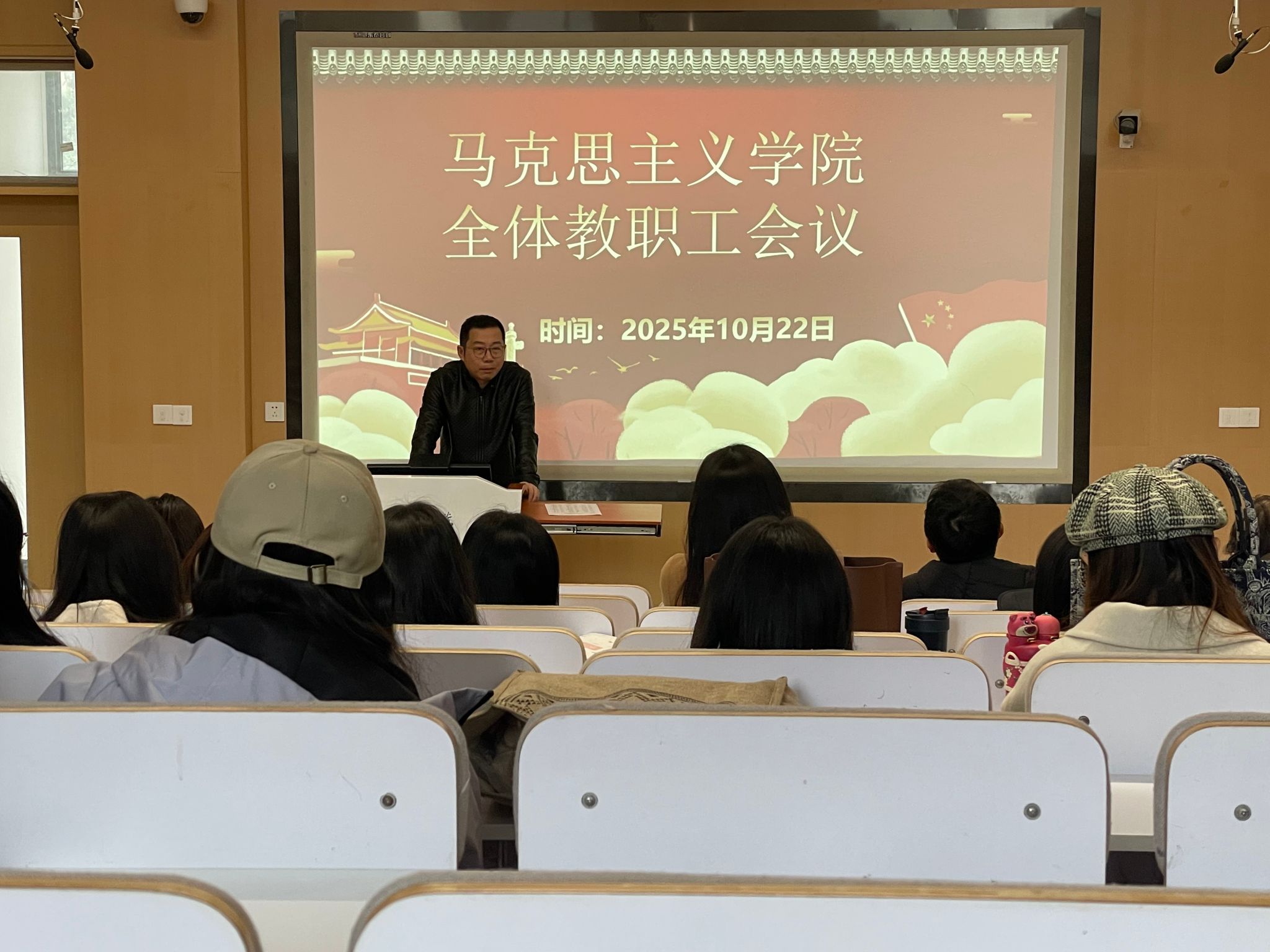 2025年10月22日,马克思主义学院在712T召开学院教职工大会,就近期工作进行了安排部署。