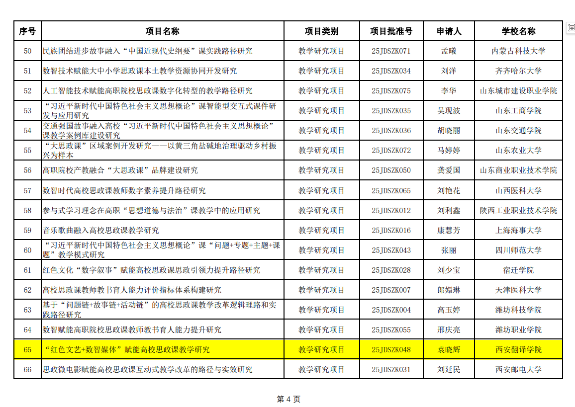 “红色文艺+数智媒体”赋能高校思政课教学研究,袁晓辉,科研项目,2025年度教育部高校思想政治理论课教师研究专项,2025-11-29